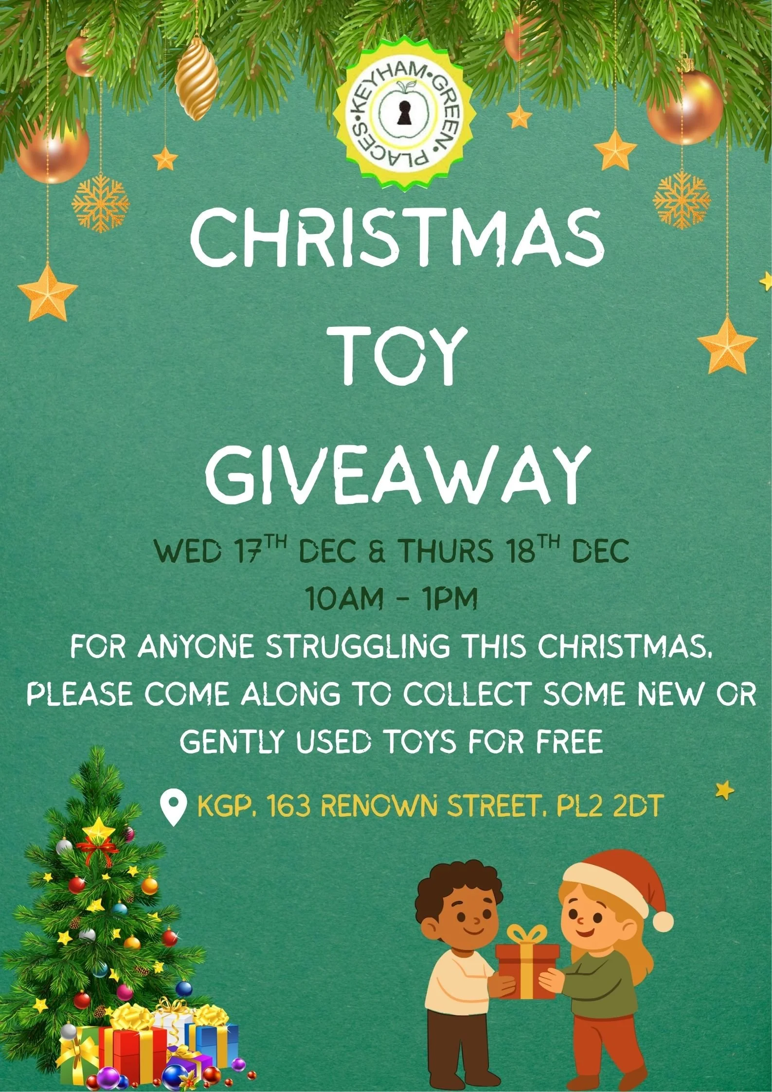 We are hosting a free Toy Giveaway for anyone struggling this Christmas, on Wed 17th Dec and Thurs 18th Dec from 10am - 1pm at KGP.